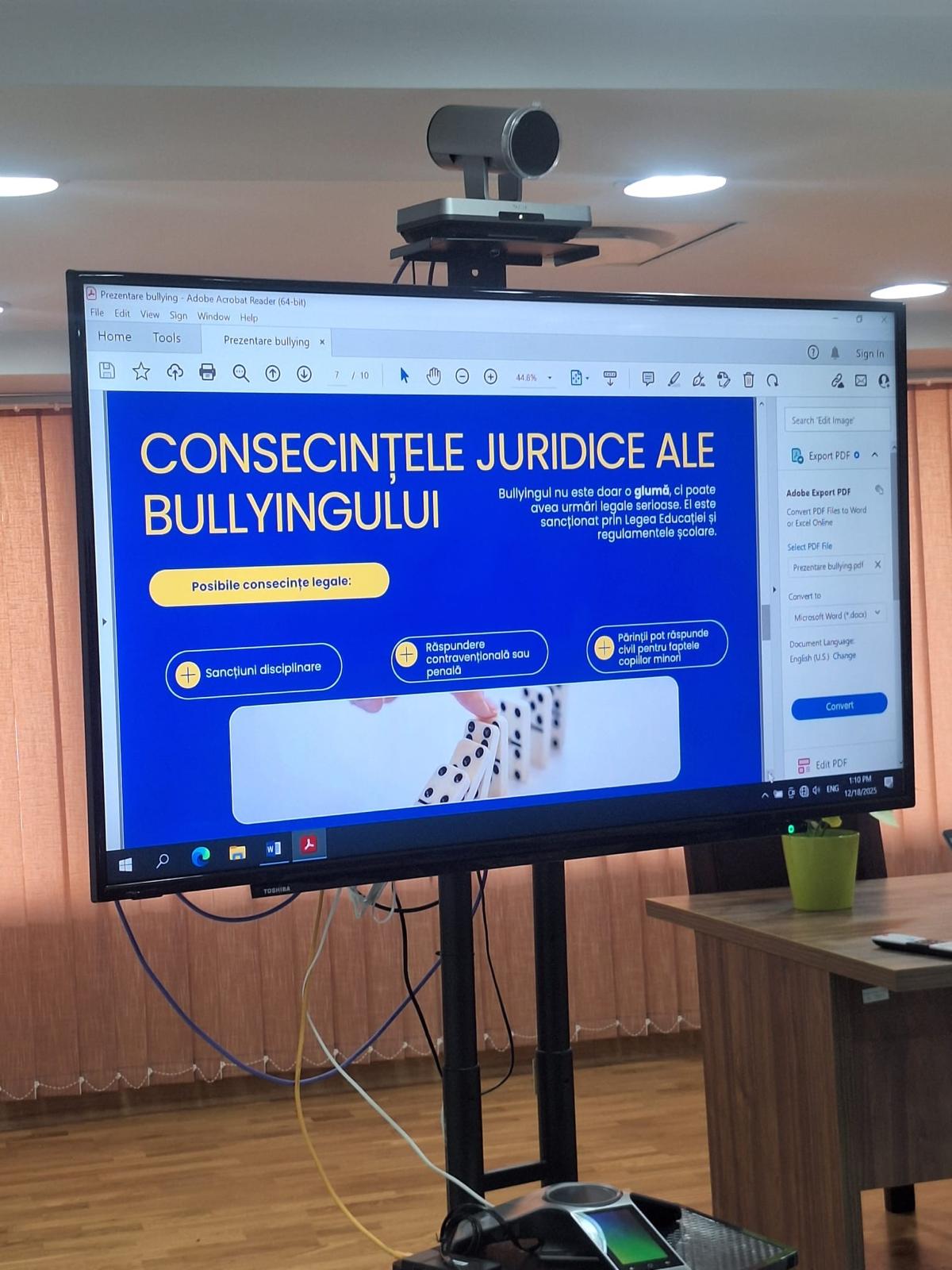 1. Conștientizarea fenomenului de bullying. Elevii au înțeles ce înseamnă bullying-ul, formele sale (verbal, fizic, online), consecințele și gravitatea lui. Procesul simulat le-a arătat