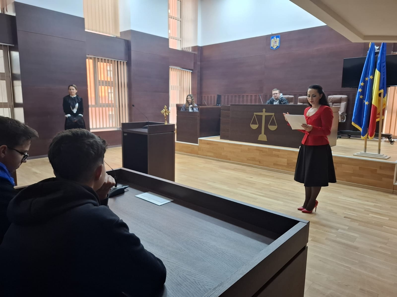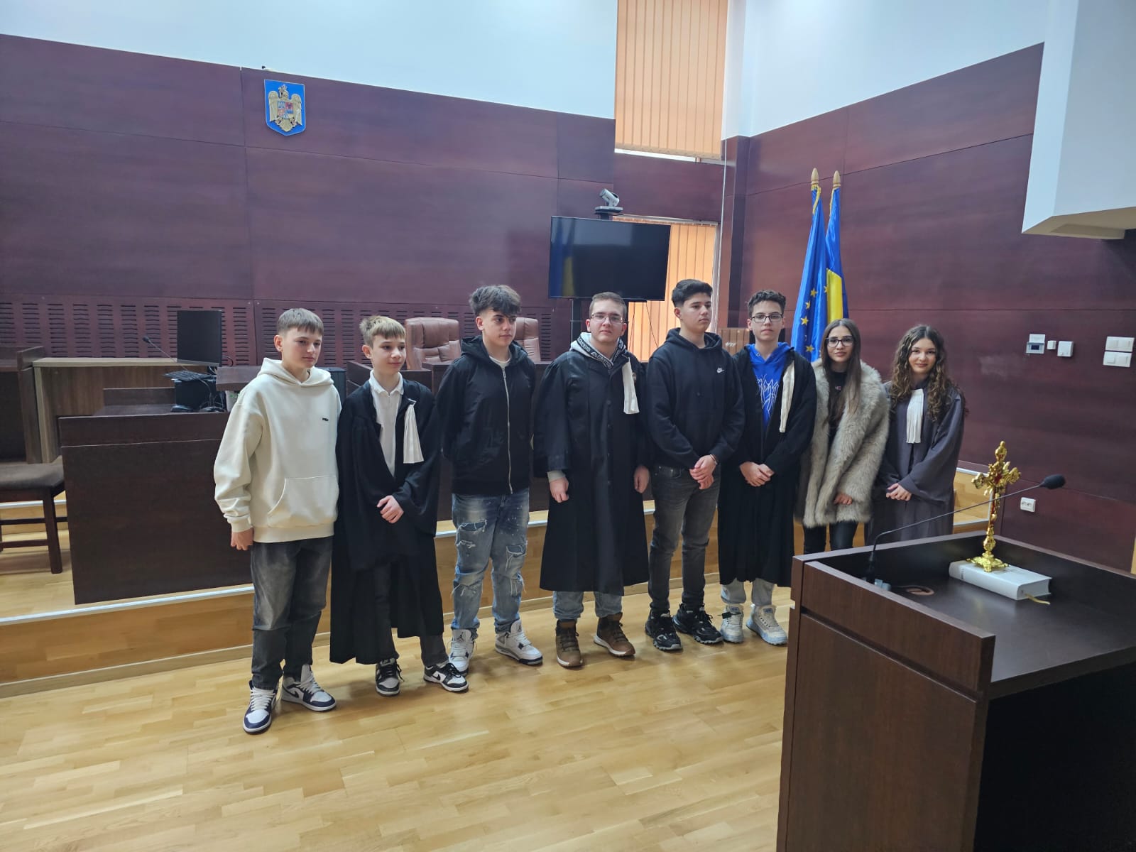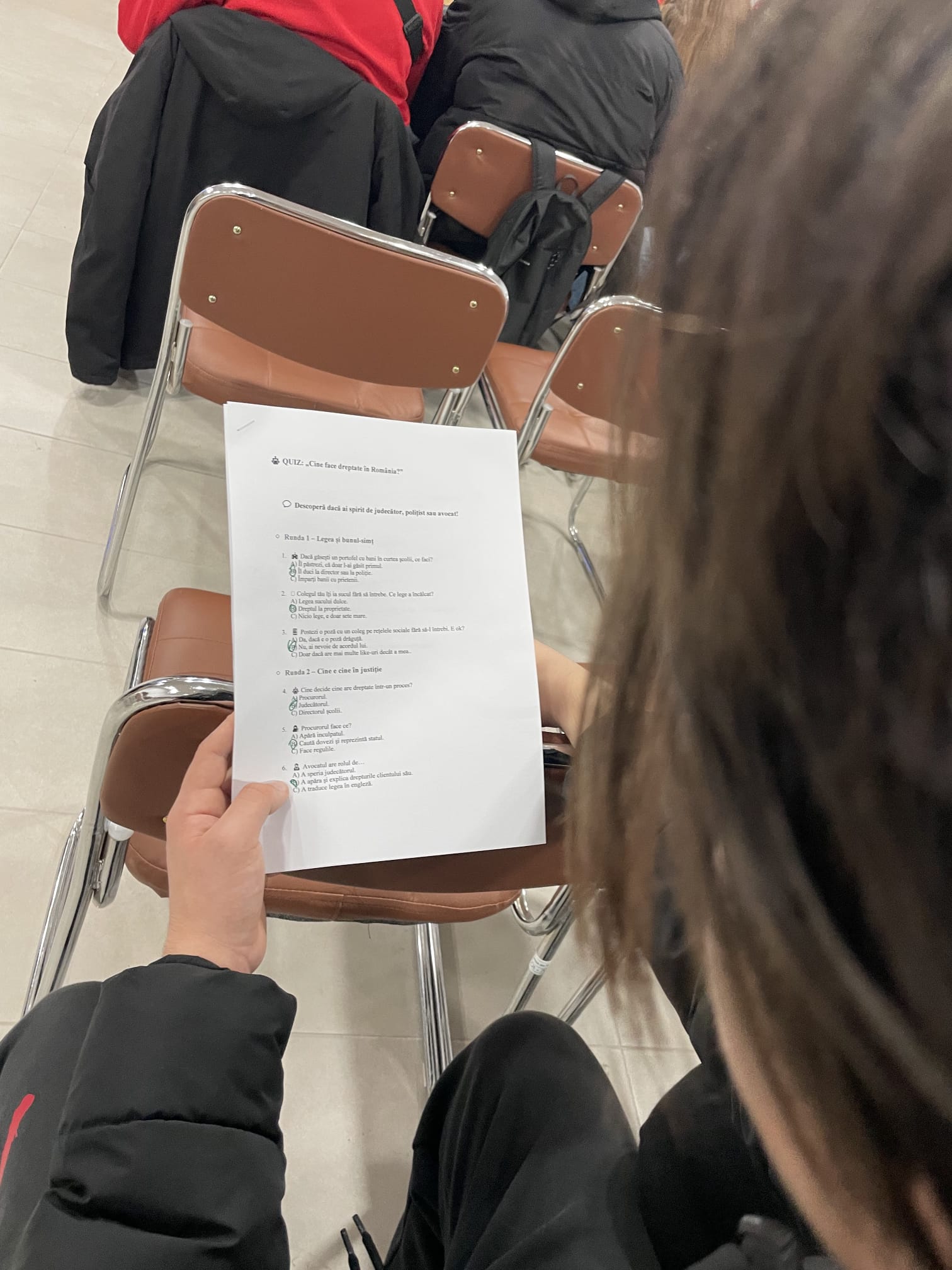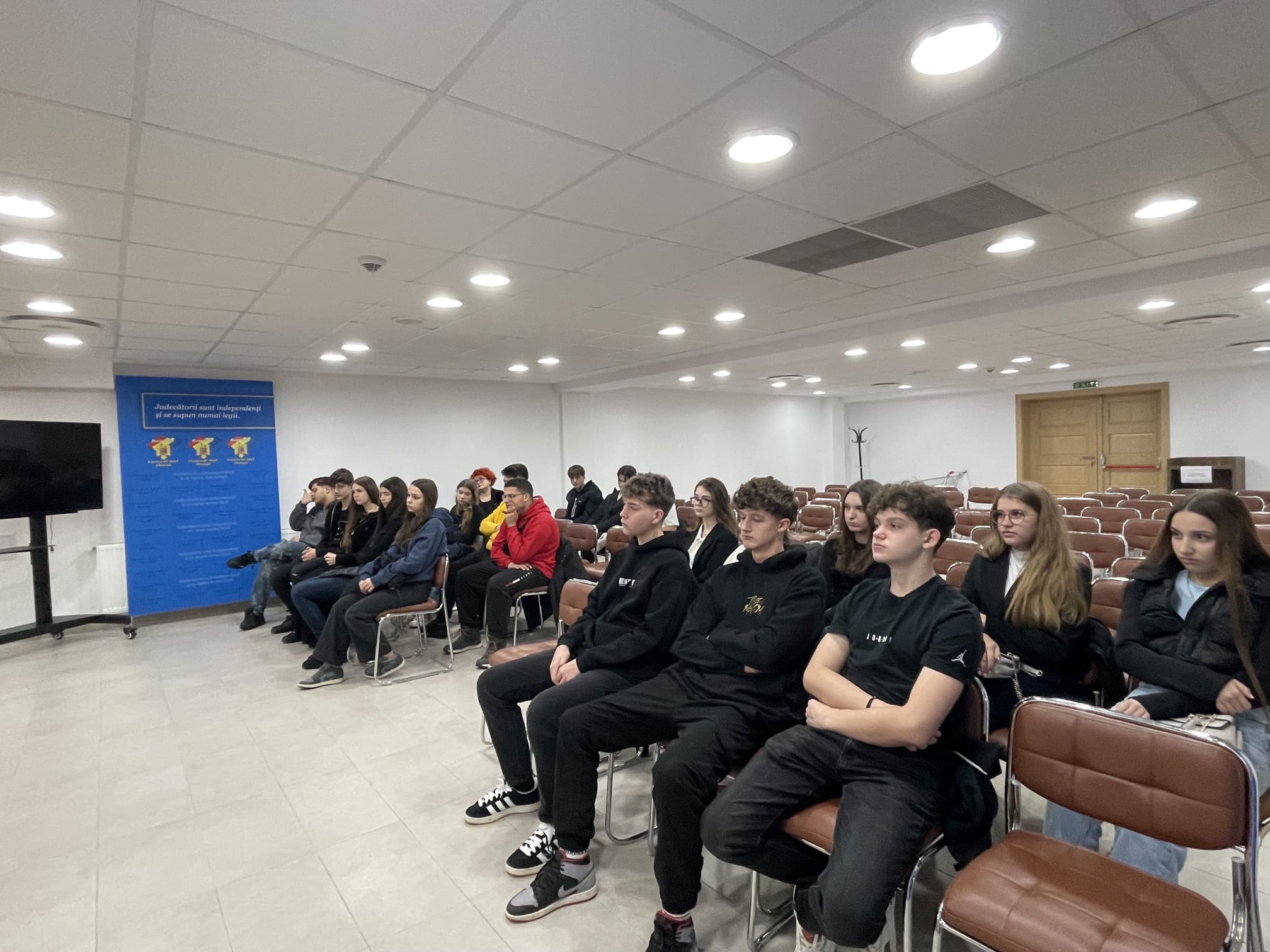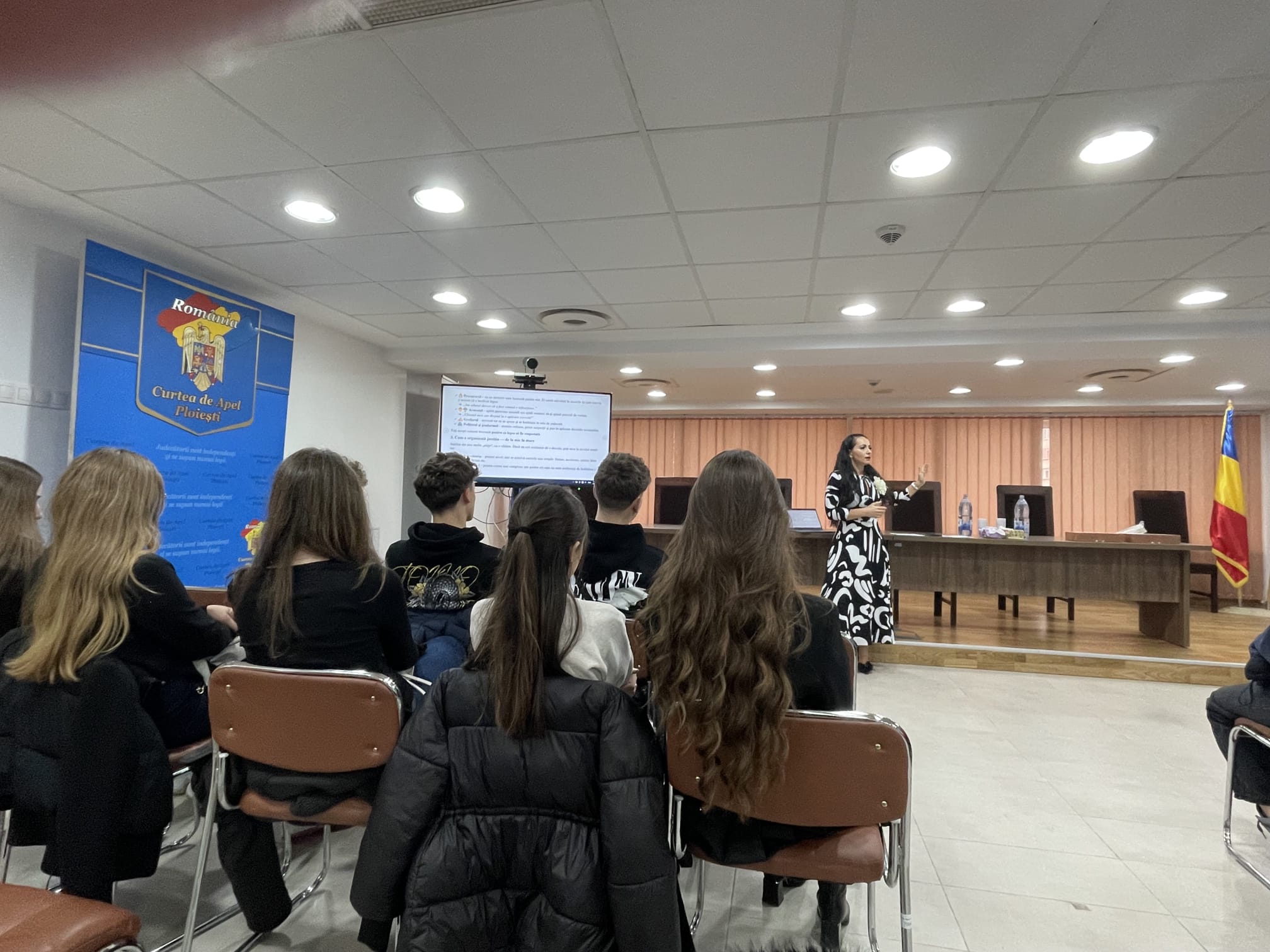 Astfel, toți participanții au beneficiat de un tur ghidat al Palatului de Justiție, inclusiv vizita unor săli de judecată, le-au fost prezentate aspecte generale referitoare la sistemul judiciar, într-o modalitate accesibilă, și li s-a răspuns tuturor întrebărilor, inclusiv celor amuzante (cum ar fi, de exemplu, de ce nu avem ciocănel sau dacă purtăm perucă 😊).